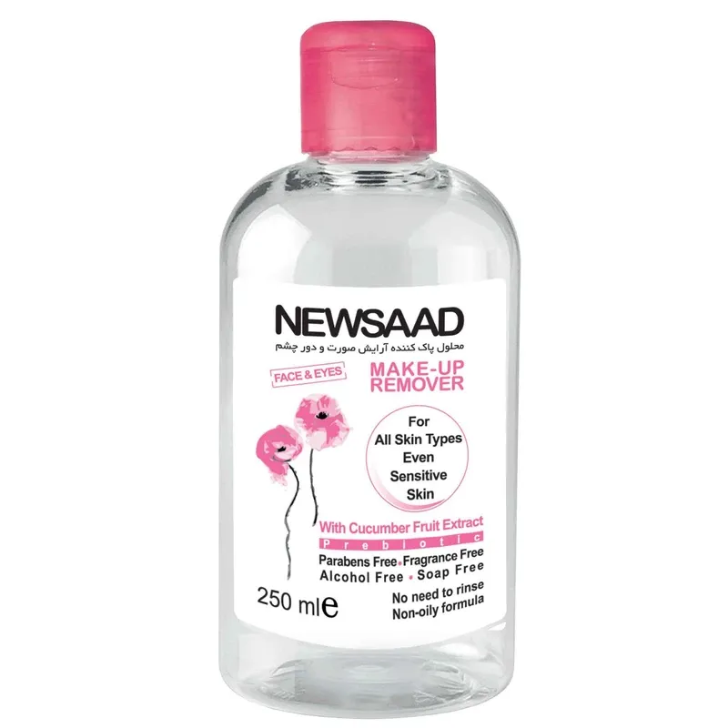 دست می‌دهد. چنانچه جز آن دسته افرادی هستید که ساعات طولانی مواد آرایشی روی پوستتان می‌ماند بهتر است پس از اتمام روز یک پاکسازی پوست انجام دهید و منافذ پوست خود را به خوبی تمیز کنید. شایان به ذکر است که محلول‌های پاک کننده متعددی برای پاک کردن آرایش تولید و روانه بازار شده است که ما امروز قرار است یکی از بهترین محلول‌ها را به شما معرفی کنیم. محلول پاک کننده آرایش صورت نیوساد مدل میسلار واتر حجم 250 میلی لیتر محصول امروز ما است برای کسب اطلاعات بیشتر درباره این محصول استثنایی چند دقیقه از وقت خود را در اختیار ما قرار دهید. محلول پاک کننده آرایش صورت نیوساد مدل میسلار واتر به خوبی می‌تواند آلودگی‌ها و چربی‌های روی پوست را از بین ببرد. این محلول می‌تواند انواع لوازم آرایشی را حتی لوازمی که ضد آب هستند را پاک کند. جالب است بدانید که این محصول بخاطر داشتن مواد مغذی و ترکیبات مفیدی که دارد نه تنها از خشکی پوست شما جلوگیری می‌کند بلکه موجب رطوبت پوست می‌شود. محلول نیوساد دارای مواد پرو بیوتیکی است که موجب رشد باکتری‌های مفید در سطح پوست شده تا سلول‌های پوست ترمیم شوند. البته باید به این نکته اشاره کنیم که ترکیبات موجود در میسلارواتر نیوساد باکتری‌های مضر روی پوست را از بین می‌برد.